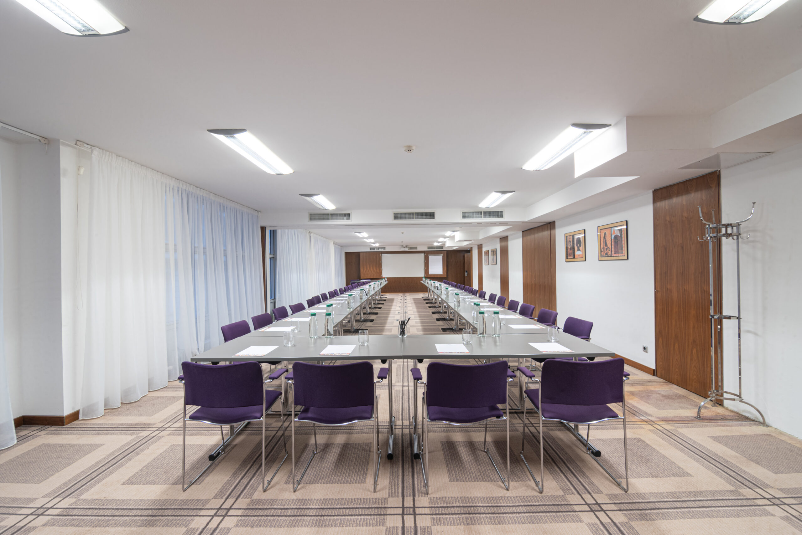 | Room | m² | U-Shape | Theatre | Classroom | Boardroom |