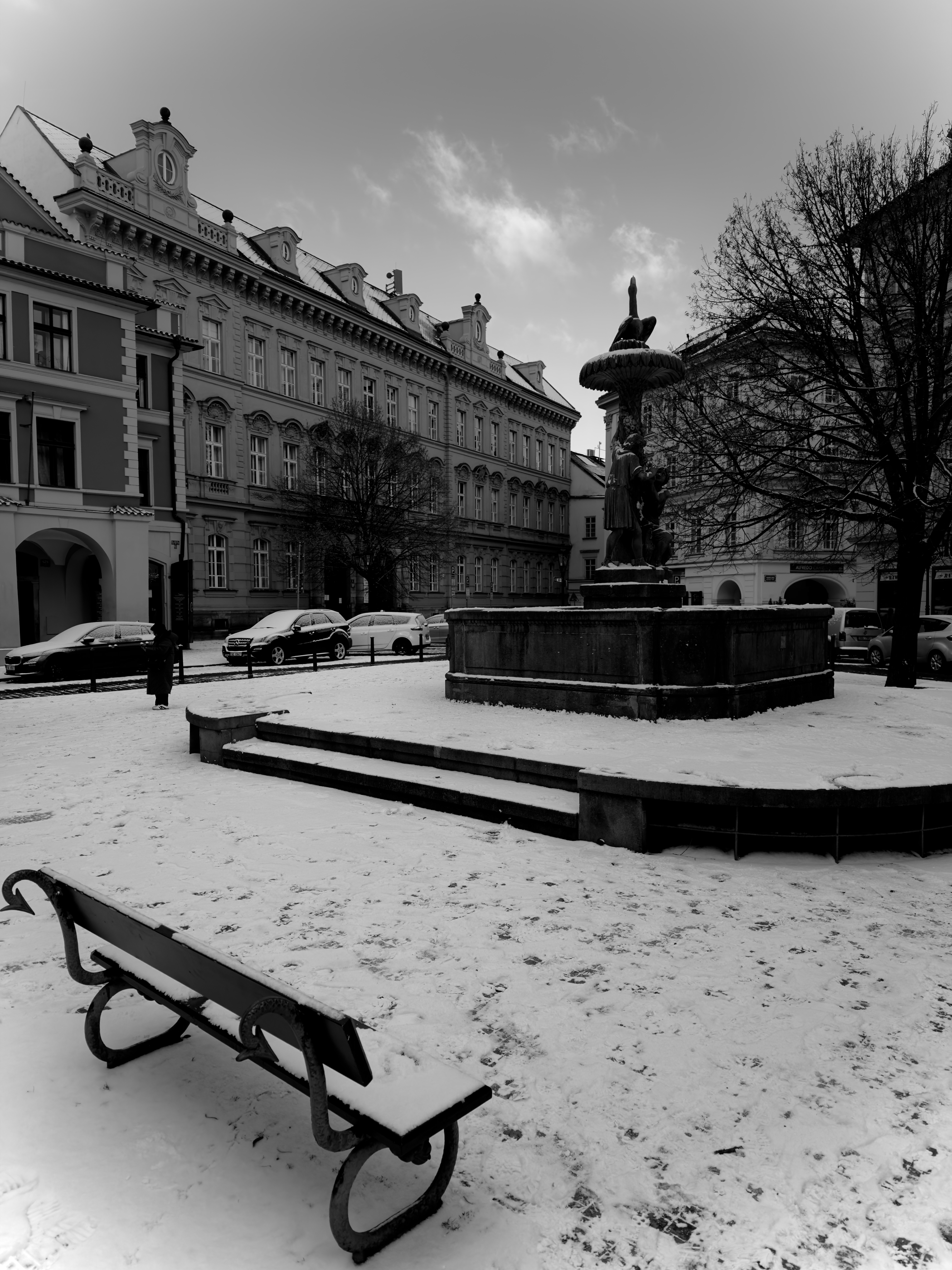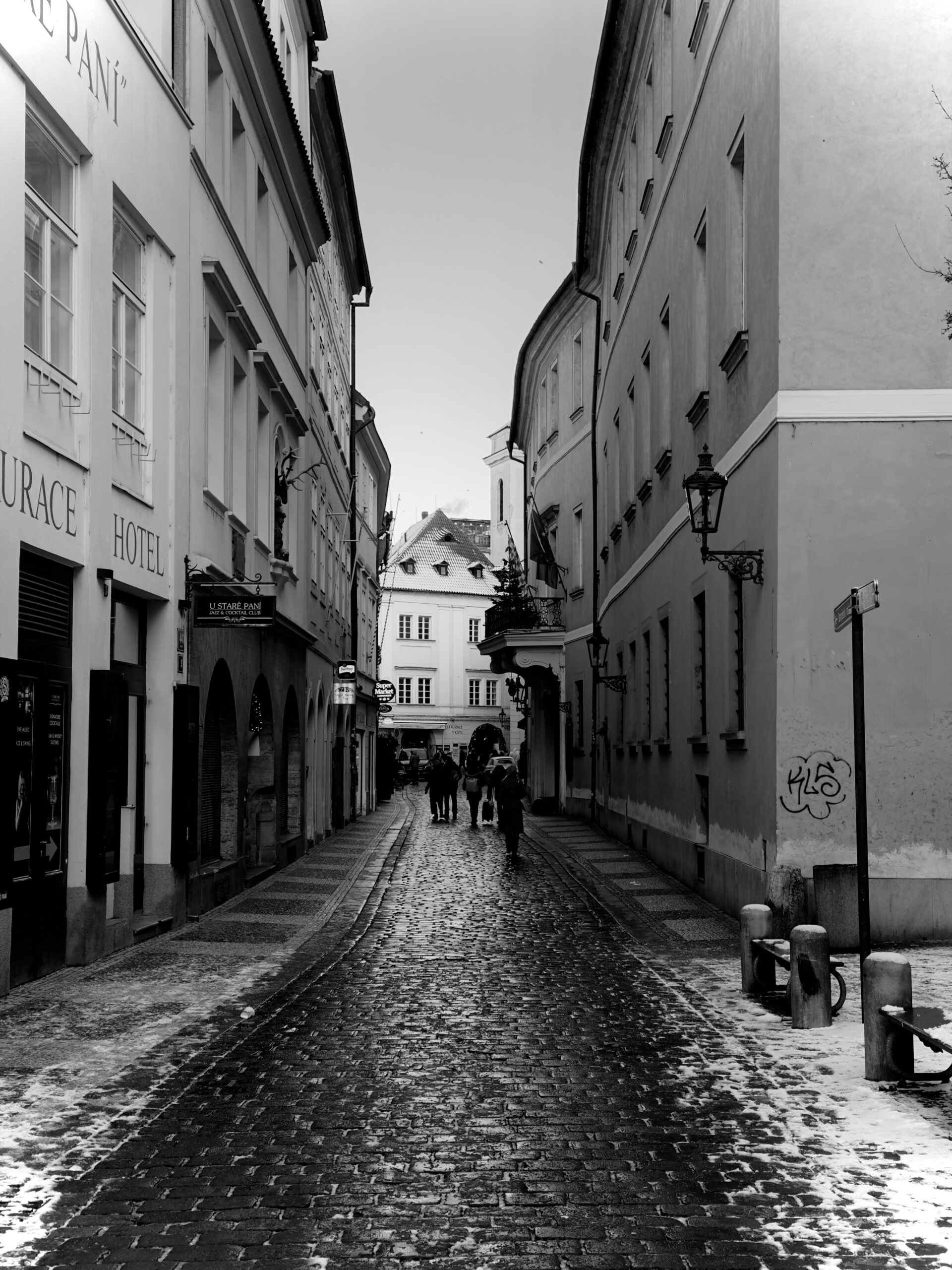 Walking in winter often means moving without an agenda. You follow instinct: a narrow lane softened by snow, a courtyard framed by quiet windows, a stairway leading into a muted glow. The lack of colour makes texture the main storyteller — the grain of stone, the lines of balconies, the weight of clouds. Prague asks only that you slow down enough to notice.