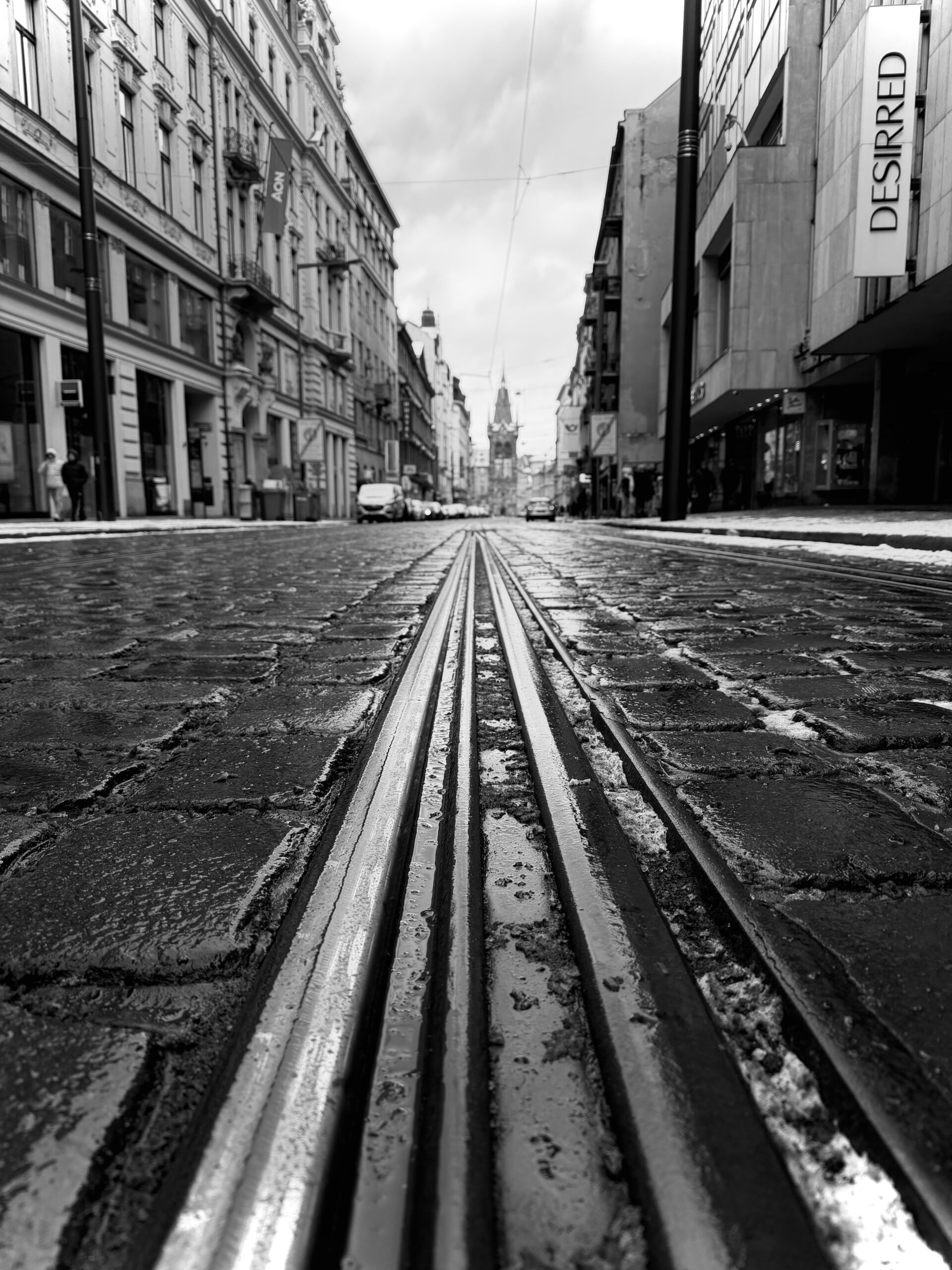 Snow does not fall evenly here. It collects in corners, on tram tracks, along the edges of rooftops. These irregularities don’t obscure the city — they deepen it. They invite you to look twice.