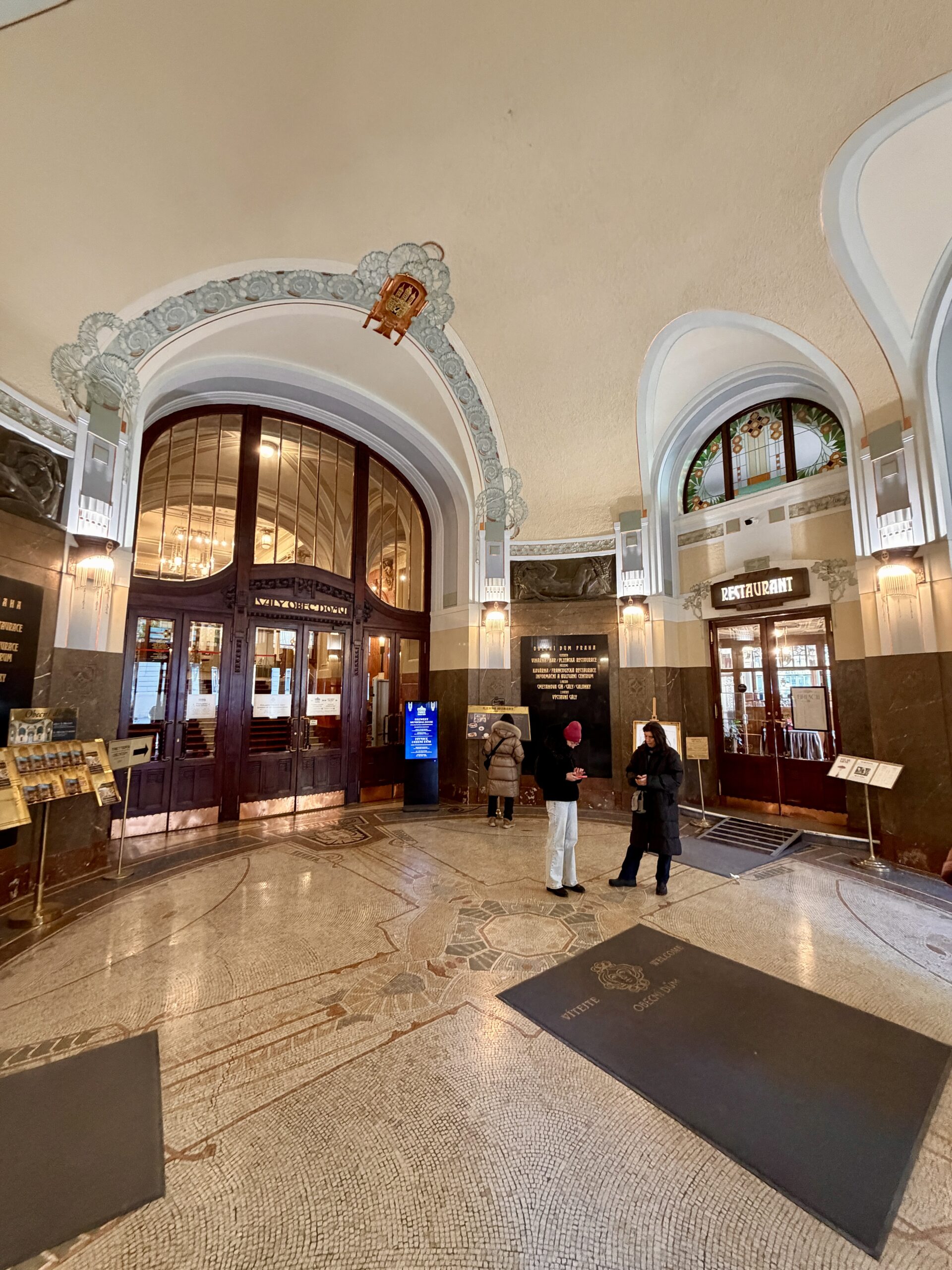 Few buildings capture winter’s duality as beautifully as the Municipal House. Outside, its façade reflects the cold, pale tones of the season. Inside, light transforms into warmth.